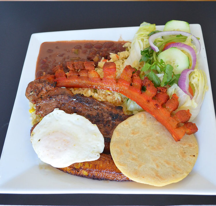 The menu leans confidently into Salvadoran comfort food, with a few Central American favorites woven in. Pupusas are the obvious star, and for good reason. Watching them made to order is almost a small lesson in technique: masa pressed by hand, fillings layered carefully, then cooked on a hot griddle until the outside turns lightly crisp while the inside stays soft. I asked one of the cooks how they keep them consistent during rush hours, and she explained that each batch of dough is mixed fresh in the morning and tested before service. That attention to process shows up on the plate. The revuelta pupusa, filled with pork, beans, and cheese, hits that perfect balance of richness and texture, especially when paired with tangy curtido and house-made tomato salsa.